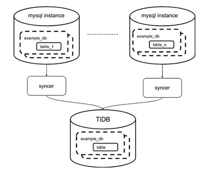 Syncer 可以部署在任一台可以连通对应的 MySQL 和 TiDB 集群的机器上,推荐部署在 TiDB 集群。